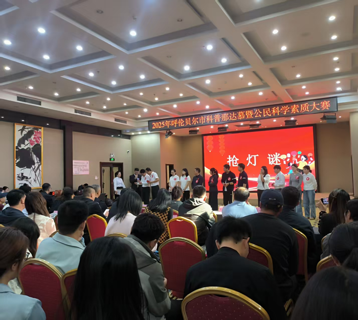 为深入贯彻落实习近平总书记关于科技创新、科学普及和科学素质建设的重要论述,贯彻铸牢中华民族共同体意识,持续深化“感党恩 听党话 跟党走”群众教育,深入实施全民科学素质行动,在中华人民共和国成立76周年来临之际,9月26日,呼伦贝尔市科协与市科技馆联合主办了全国科普月系列活动——2025年呼伦贝尔市“科普那达慕”暨公民科学素质大赛,来自全市13个旗市区52名选手参赛,市“8+6党建聚力工程”成员单位、海拉尔区教研中心、守望相助结对帮扶雅尔塞嘎查,“双报道 双服务 双报告”共建社区和呼伦贝尔市中心城新区、海拉尔区、鄂温克旗的各中小学、社区、企业代表,各学会、科技小院、科普信息员、科技志愿者代表等200余人现场观赛。