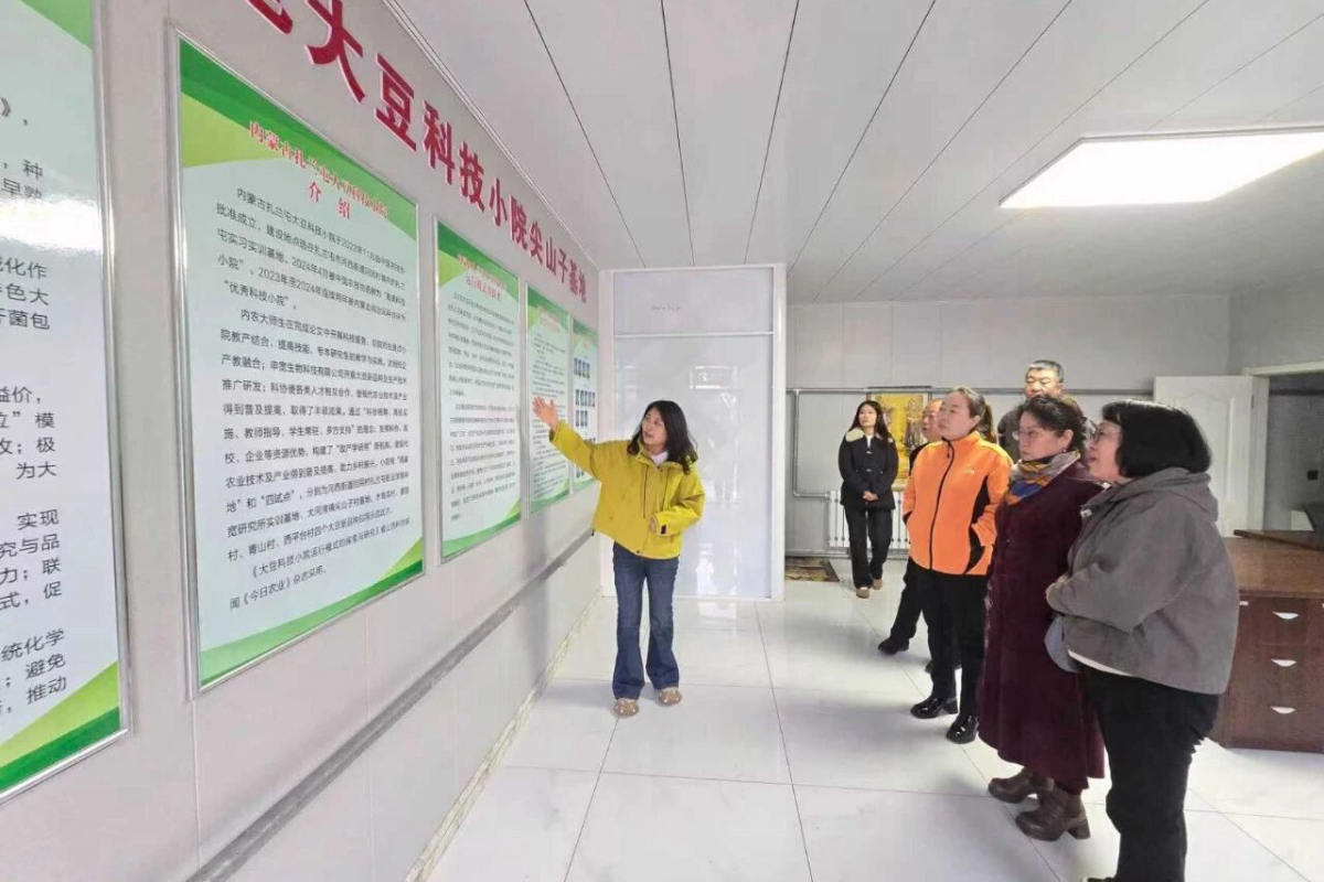 在扎兰屯职业学院实训基地、大河湾镇尖山子基地,实地查看了小院活动室、教室和实验田,全面了解小院建设、项目实施以及取得的科技成果等情况。扎兰屯大豆科技小院依托呼伦贝尔申宽生物科技有限公司,由自治区科学技术协会、内蒙古农业大学、呼伦贝尔市科学技术协会、扎兰屯市科学技术协会共建。小院推动3项科技成果转化,小院专家团队编写3类科技指导书籍,申报4项技术规程,培育9个大豆品种,小院研究生开展9项课题研究,为行业发展提供强有力的科技支撑。