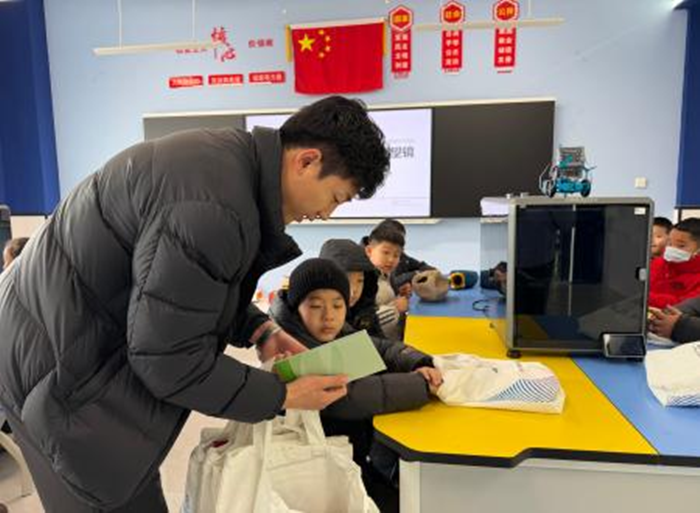 课堂上科技辅导员发放潜望镜实验材料、科普知识宣传单和科普宣传品,激发学生对科学知识的兴趣。科技辅导员讲解潜望镜的基本信息和基本原理,让学生了解光学原理。